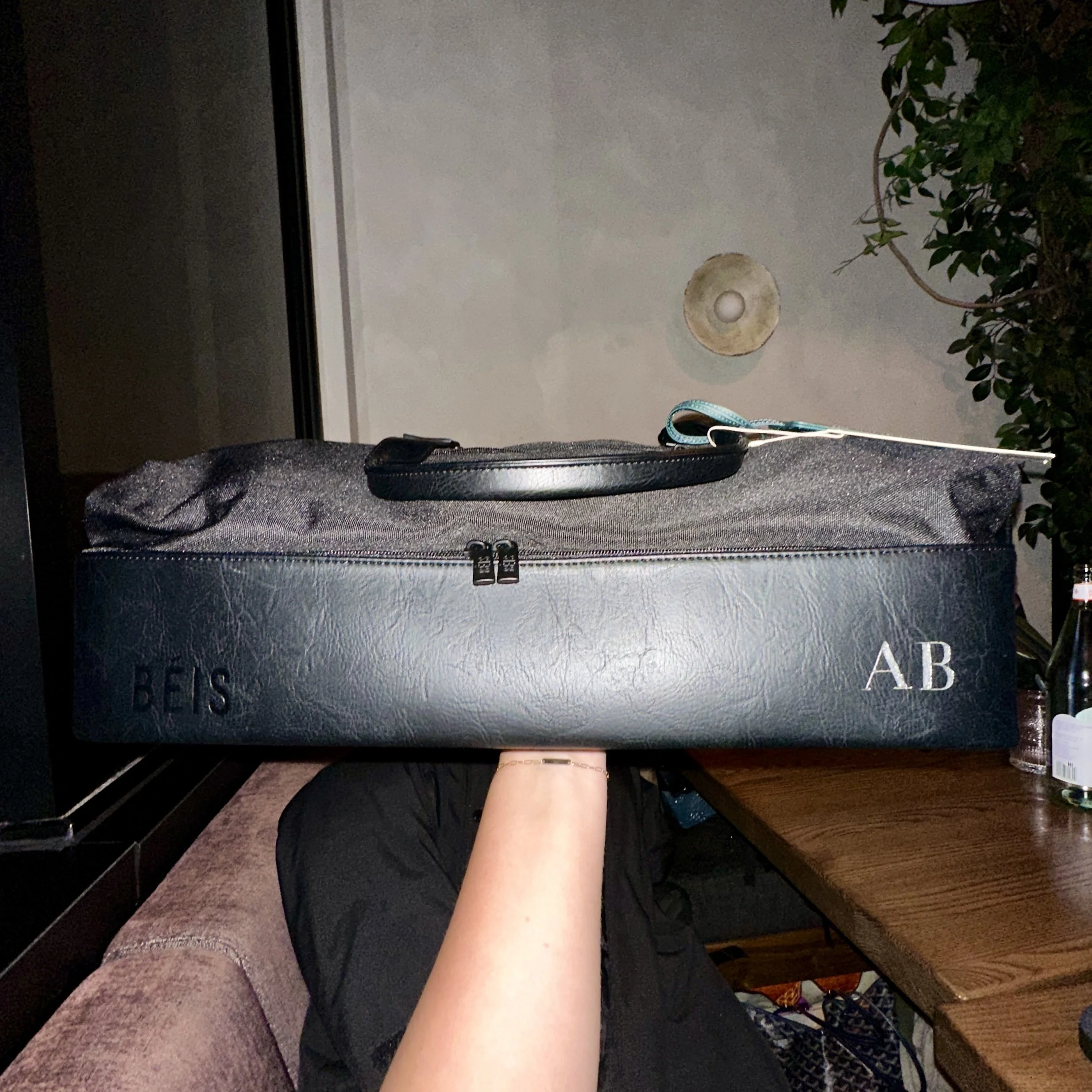 Guests were able to choose serif-style lettering, a deliberate design choice that complemented BEIS’s clean, structured aesthetic while maintaining a timeless feel. Names and initials were applied thoughtfully, ensuring each bag felt personal without compromising the brand’s visual language.