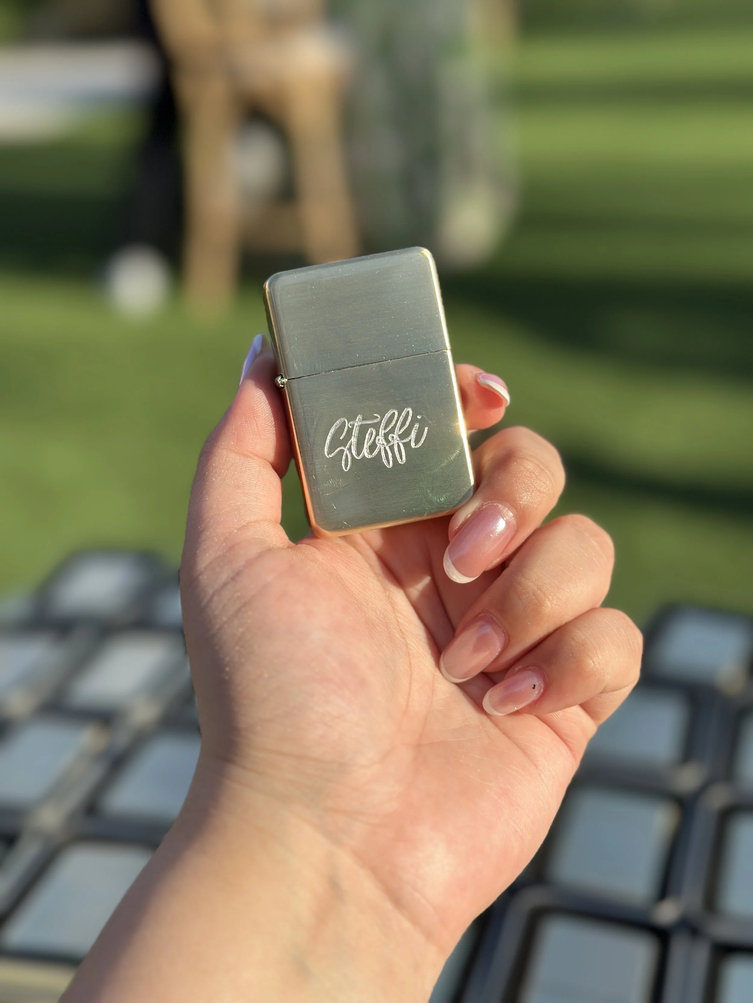 As CEOs and executives mingled poolside under the stars, they were invited to bring their brushed metal Zippo lightersto our engraving station, where we inscribed their initials, names, or messages while they watched. With the sound of engraving tools delicately etching into metal, the experience added an unexpected layer of interaction to a luxury networking event.